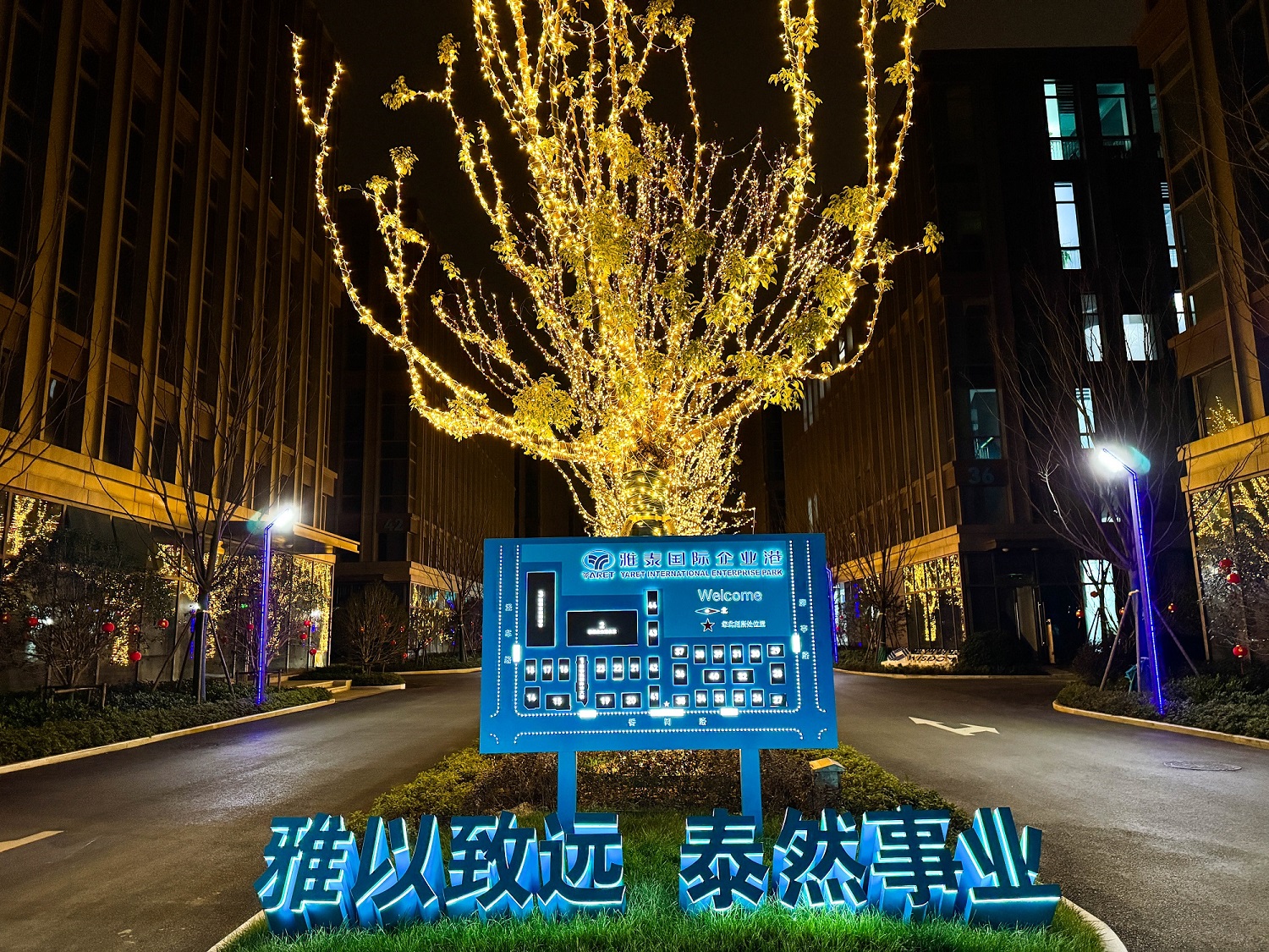 2月9日晚,集團主要管理者、子公司主管及優(yōu)秀員工一起來到雅泰國際企業(yè)港園區(qū)進行游園活動。園區(qū)節(jié)日氣氛濃厚,到處張燈結(jié)彩,昭示一個吉祥幸福年的到來。樹上璀璨的燈飾流光溢彩,如繁星映月,將整個園區(qū)點亮;每棟樓前的大紅燈籠紅紅火火,十分喜慶,充滿了節(jié)日的歡樂。為了讓園區(qū)入駐的企業(yè)感受到這份祥和與舒適,體驗到幸福中國年的節(jié)日氛圍,雅泰國際企業(yè)港物業(yè)公司早早進行準備與布置,讓入駐的業(yè)主與員工在園區(qū)能開開心心上班,團團圓圓奔向幸福年!