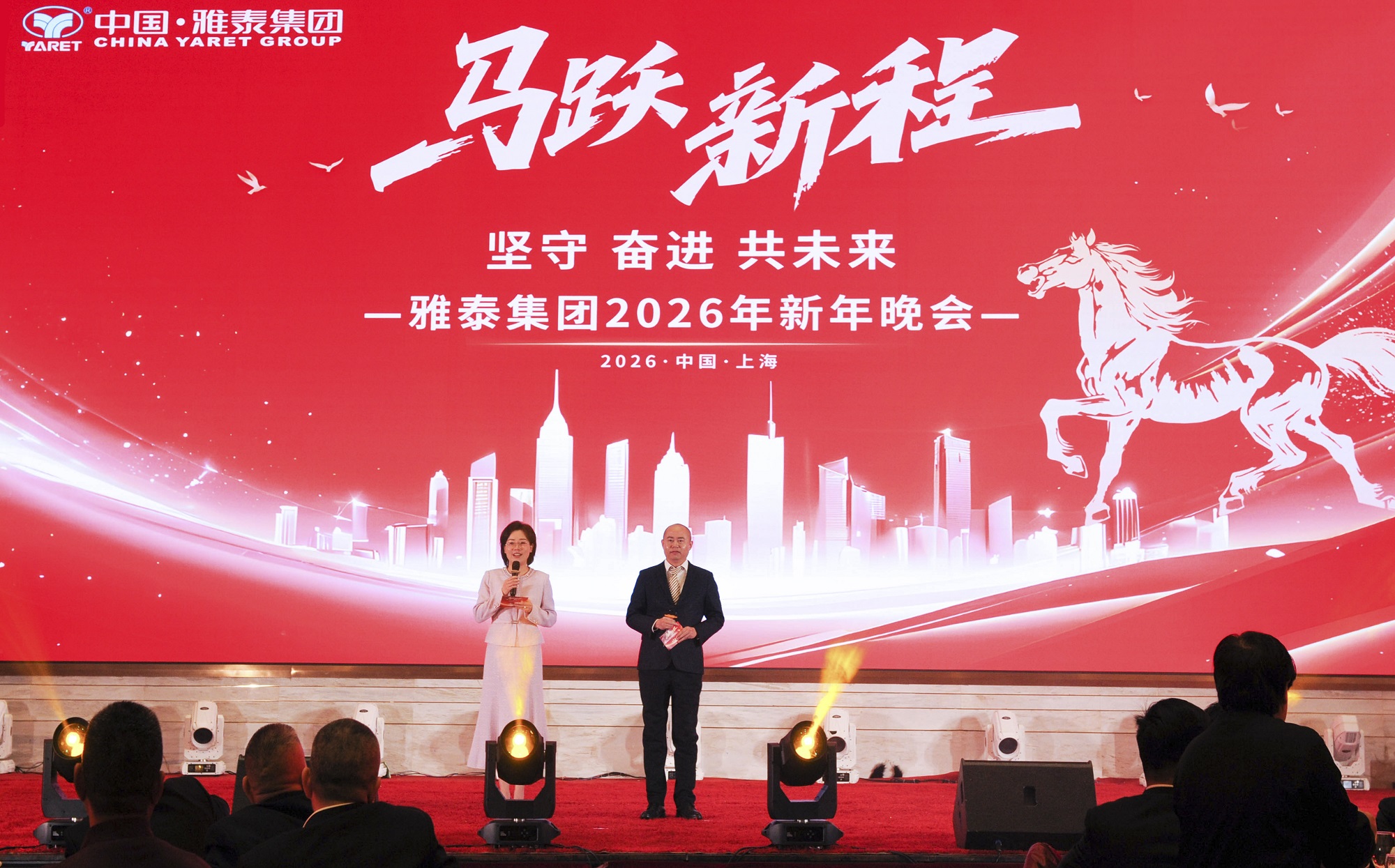 2月10日晚,客戶代表、雅泰友人、股東及家屬、退休老員工代表與總部及各子公司的主管、優(yōu)秀員工一起,參加了雅泰實業(yè)集團成立2026年新年酒會。