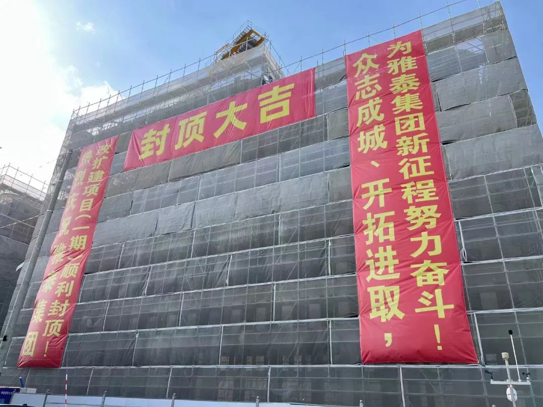 2022年12月18日,雅泰迎來23周歲生日之際,聯(lián)東U谷·雅泰國際企業(yè)港項目成功完成主體封頂,集團大樓上掛滿了慶賀的條幅,項目相關領導、單位共襄盛舉。